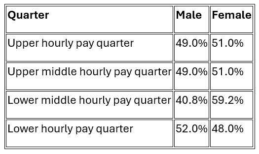 We have also maintained a balanced gender distribution across pay quartiles, with female representation remaining strong at all levels of the business.