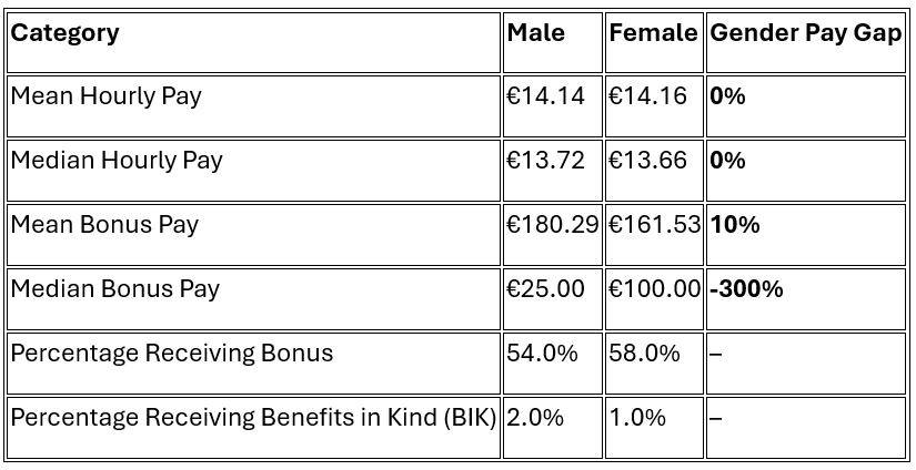 Under the legislation Gender Pay Gap Information Act 2021, that determines from 2025 all companies over 50 employees are required to report the Gender Pay Gap. As part of this commitment, we publish our results both on our website and the government portal. The data is based on the snapshot in Ireland between 01/07/2024 to 30/06/2025 and includes the following measures: The mean and median gender pay gap The mean and median bonus gap The proportion of male and female employees receiving bonuses
