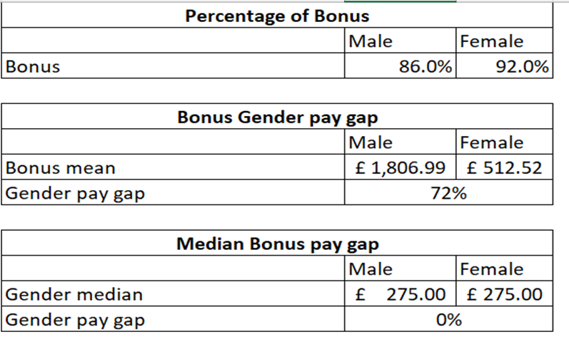 Here are some of our key results: Our median gender pay gap is 2%, an improvement on last year Our median bonus gap is 0% 92% of female colleagues received a bonus, compared to 86% of male colleagues